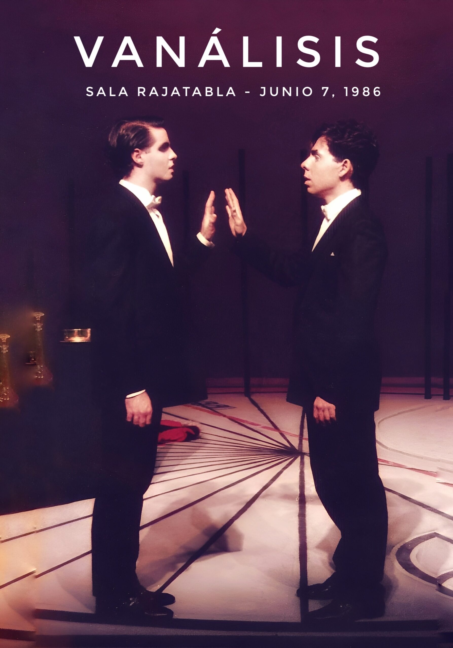Vanálisis by Alberto Ferreras, directed by Marietta Perroni, premiered at Sala Rajatabla on June 7 1985. Starring Wilfredo Cisneros, Alberto Ferreras and Marietta Perroni.