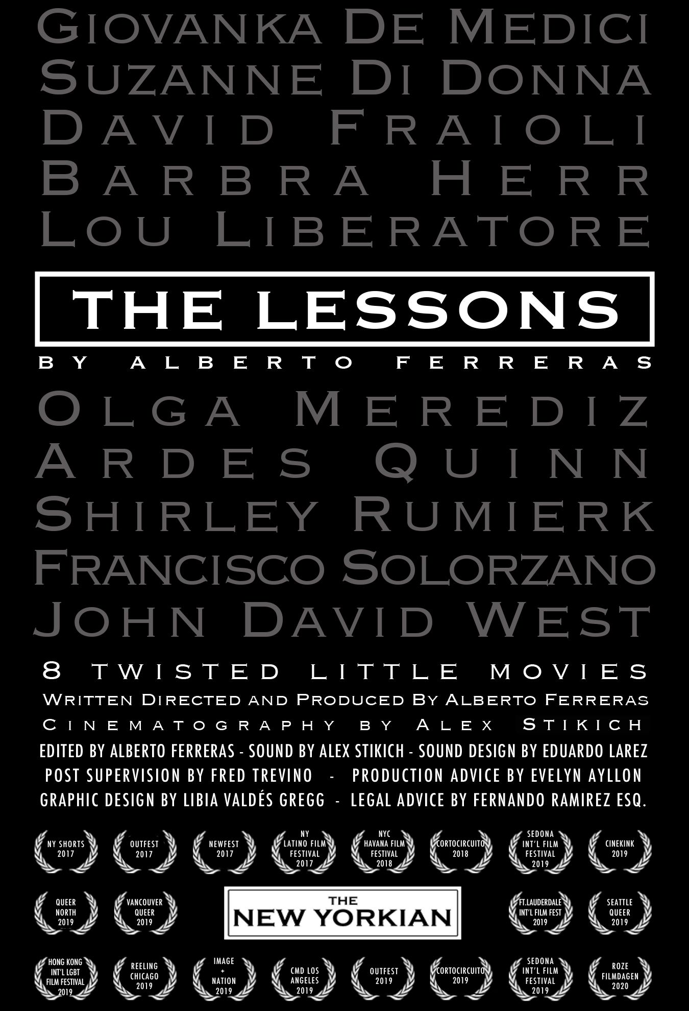The Lessons (2019-2020) is a collection of short films shot in just four hours, after a single rehearsal, yet the project went on to win both the Audience Award and the Best Alumni Film Award at the Sedona International Film Festival in 2020. It has also received honors and selections at festivals around the world, including Outfest, the Fort Lauderdale International Film Festival, the Hong Kong LGBT Film Festival, the Havana Film Festival New York, NewFest, Image + Nation, Roze Filmdagen, and NY Shorts. “Lesson #7” was licensed and aired on HBO US.